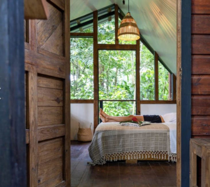 Imagine a small room with a big picture window of the jungle and a single bed. Falling asleep sound of the waves and wakeup to the sunrise over the ocean, peeping through the jungle leaves.